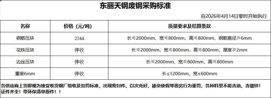 東麗天鋼廢鋼自****年*月**日零時(shí)開始執(zhí)行
