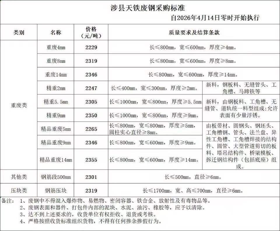 河北永洋特鋼集團(tuán)新區(qū)*月**日廢鋼收購價(jià)格上調(diào)**元/噸具體如下統(tǒng)料>*mm厚****元/噸中型>*mm厚****元/噸重型>*mm厚****元/噸重型>*mm厚****元/噸重型>**mm厚****元/噸重型>**mm厚****元/噸