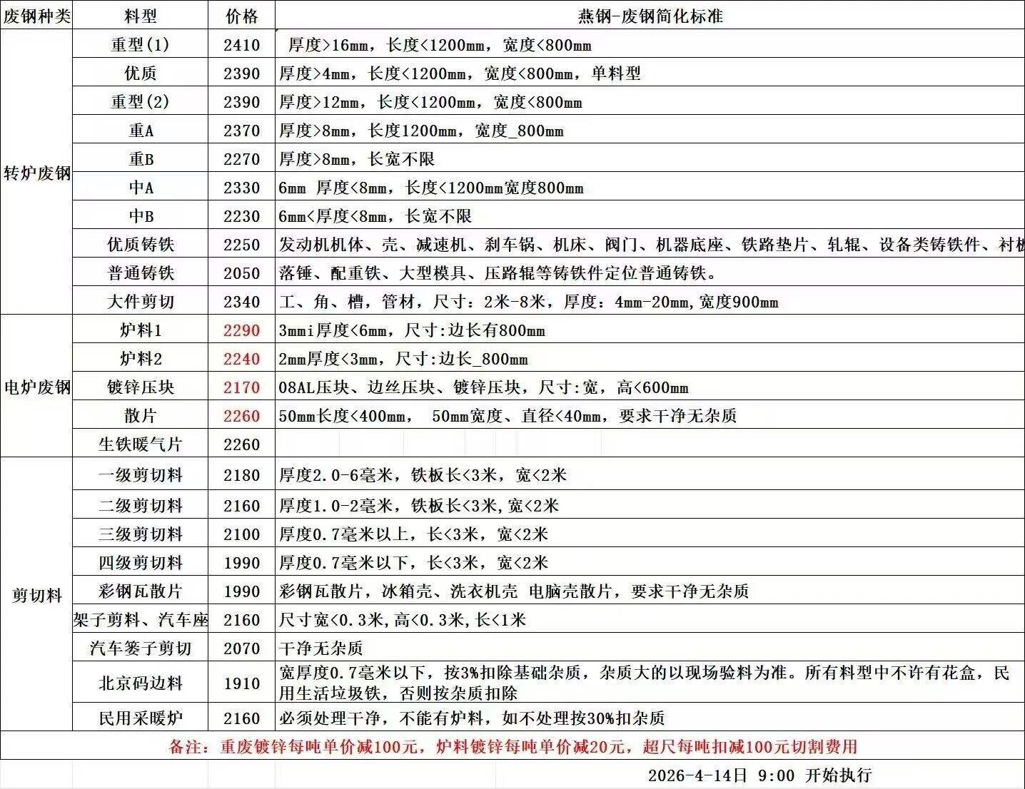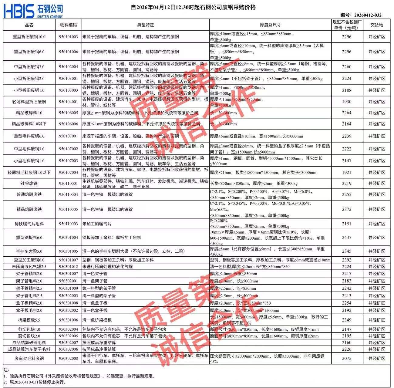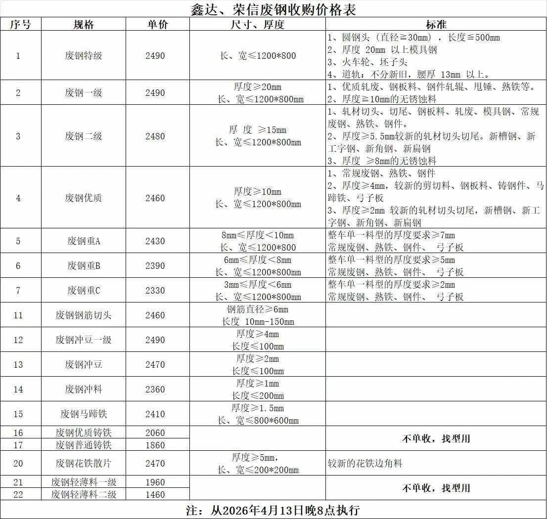 石家莊敬業(yè)通知:*月**日*點(diǎn)起本部廢鋼價(jià)格調(diào)整,具體詳見價(jià)格表。