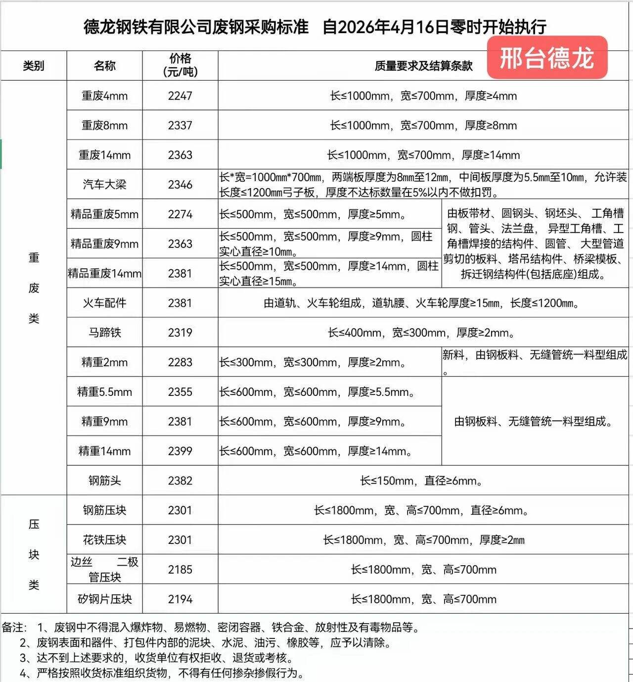 邢臺(tái)德龍將重廢*mm尺寸,由長≤****mm、寬≤***mm,調(diào)整至長≤***mm、寬≤***