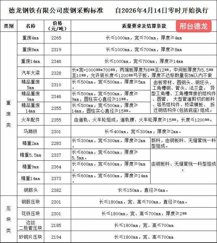 邢臺(tái)德龍廢鋼最新價(jià)